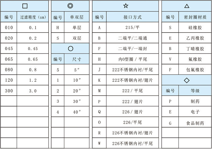 ◇ 密封圈:見濾芯選型表
