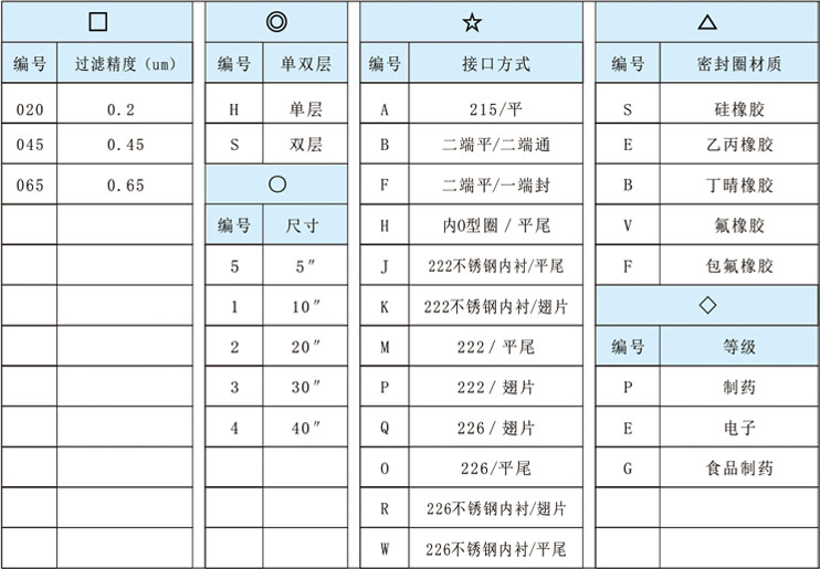 濾芯訂購信息