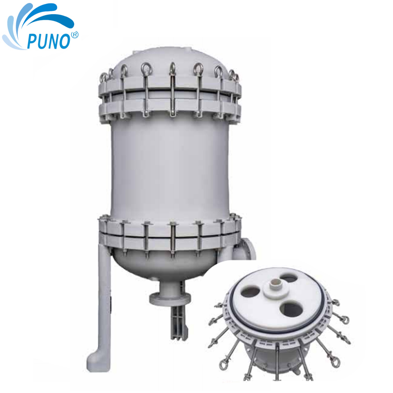 以二號袋為例:進出口方位:下進側出濾筒直徑:500 mm濾籃長度:670 mm濾籃直徑:172 mm進出口:DN80(3英寸)過濾面積:1~2平方米理論流量:80~100T/H設計壓力:7公斤建議工作壓力:6公斤內濾器容積:0.9L材質:PP材料濾器重量:65kg